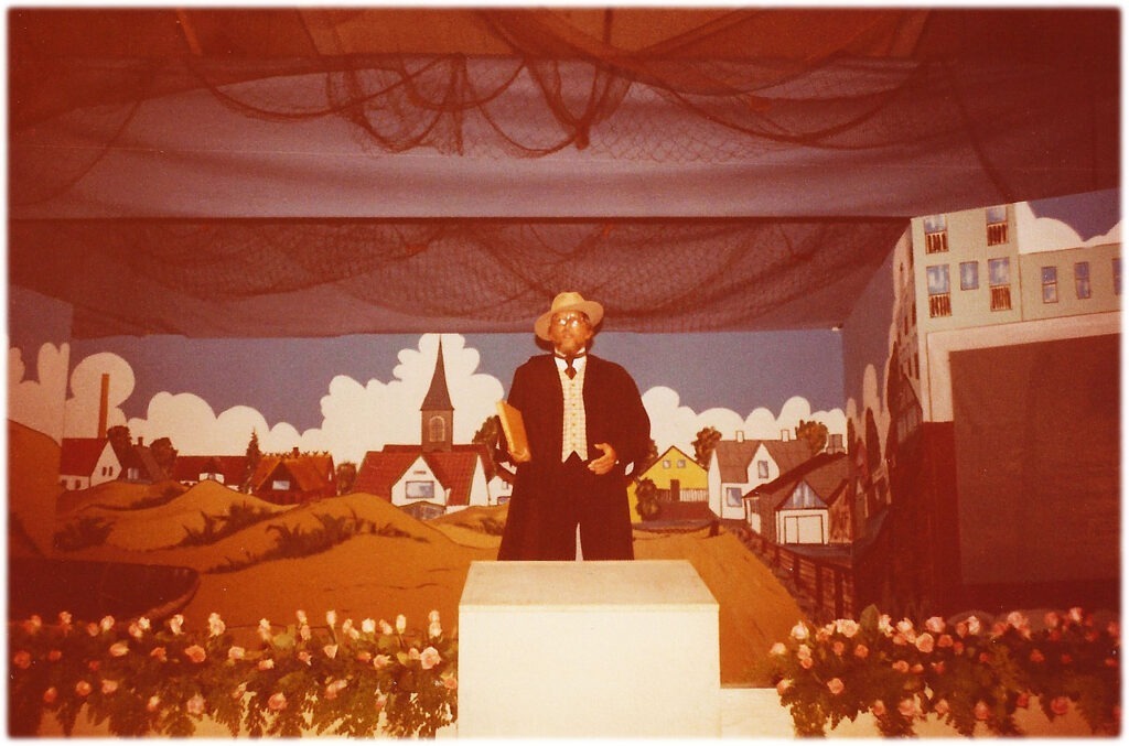 Her genopstod han foran en flot farverig ”skyline” af Hornbæk, set mod land, som bagtæppe. Dette var flot udført af familien Bjarne Mail fra Borsholm. I højre side af scenen var der et lærred indbygget i dekorationen, som kunne vise billeder fra forskellige tider og steder i Hornbæk, som et visuelt løft til de mange indslag.