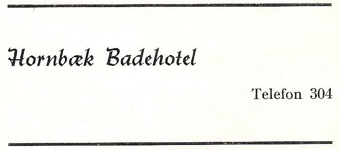 I Turistbrochuren fra 1943 var der tre hoteller med fra byen – det var under de tyske troppers besættelse i Hornbæk, men alligevel var disse hoteller i stand til at indlogere turister i sommeren 1943.