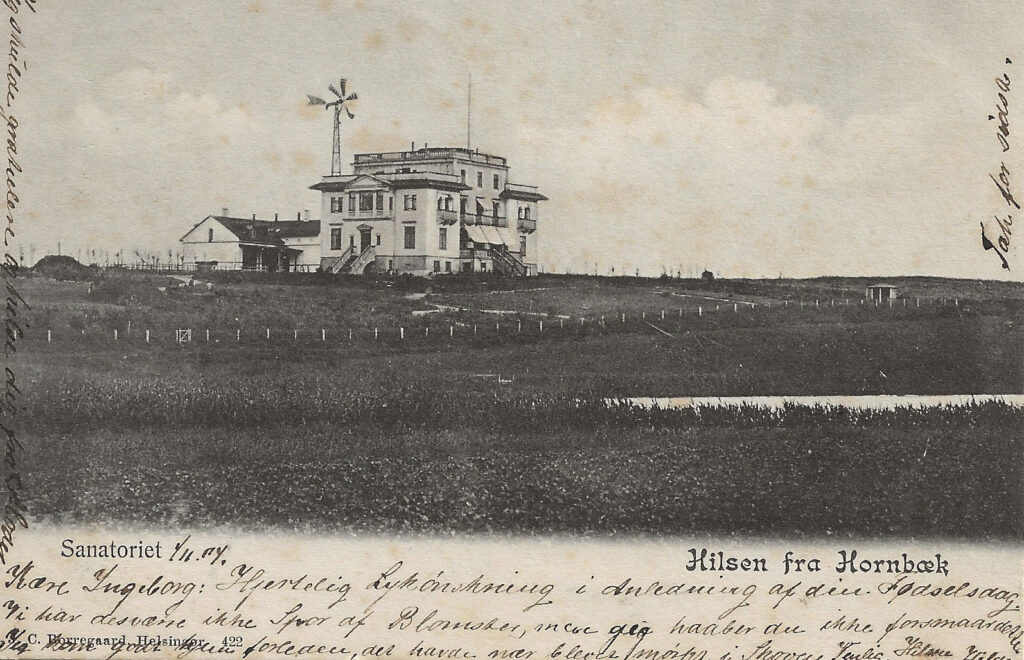 – Lige efter krigens slutning lejer Dansk Røde Kors “Sanatoriet Bretagne Hornbæk”, hvor der indkvarteres ikke tyske krigsflygtninge, mange med tuberkulose.
