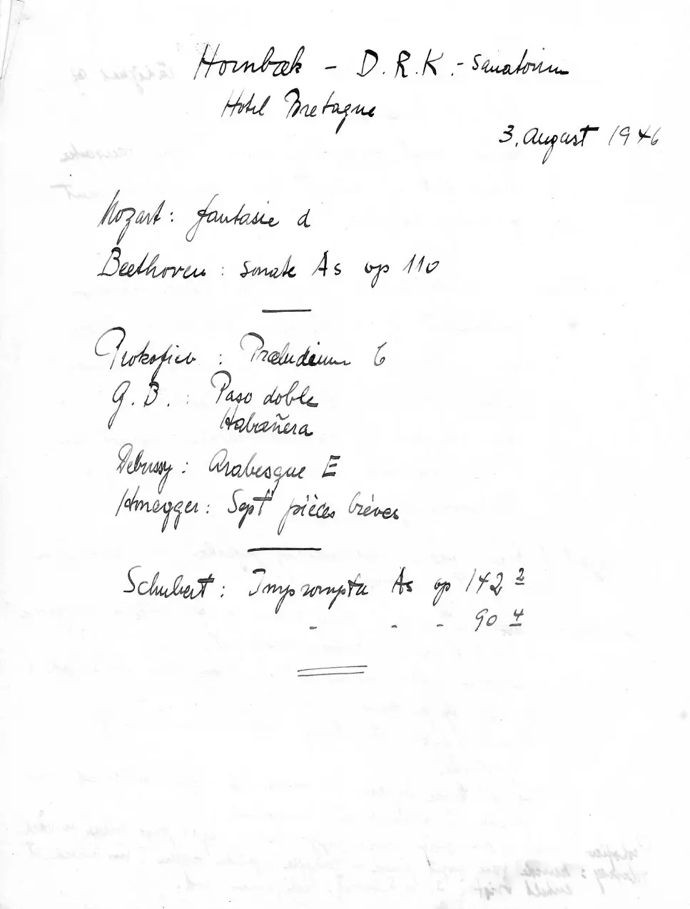 Koncert d. 3. august 1946 for flygtningene på Sanatoriet Bretagne Hornbæk