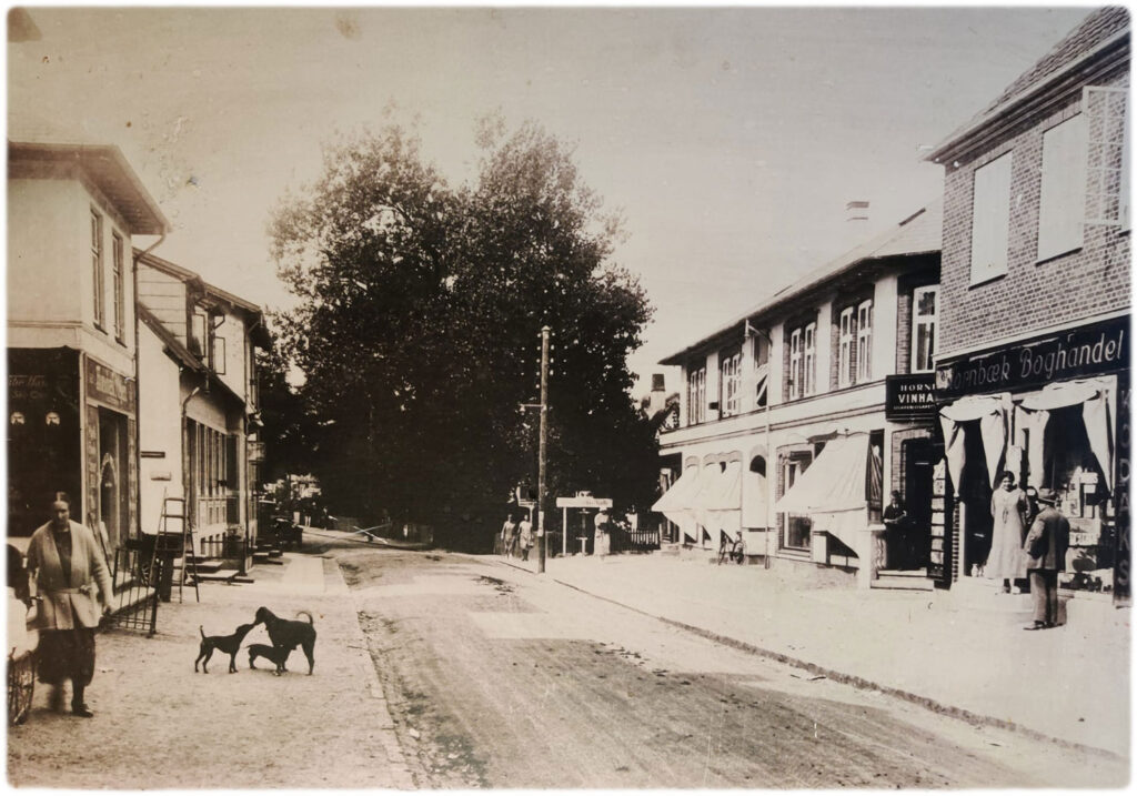 Mine oldeforældre Inger og Frederik Christian Sørensen boede og drev sadelmagerforretning med værksted på Skolebakken i Hornbæk.