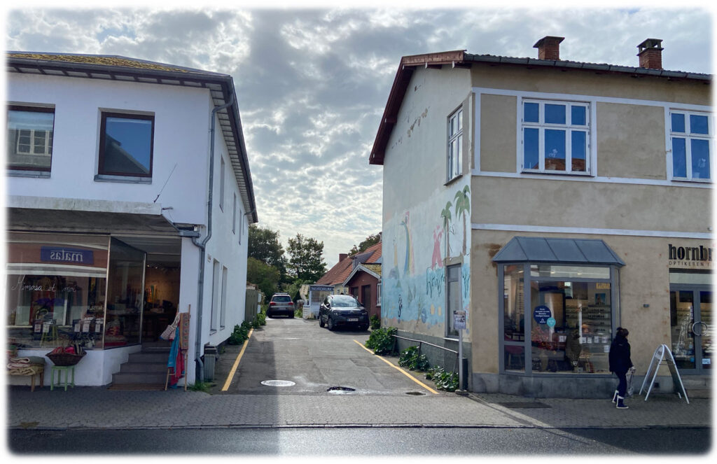 Bag bygningerne mod Hovedgaden var der et Tuborg Depot og adgang til hestestalde, slagterbutik og farvehandel. Midt på Skolebakken lå Hornbæks første telefoncentral.